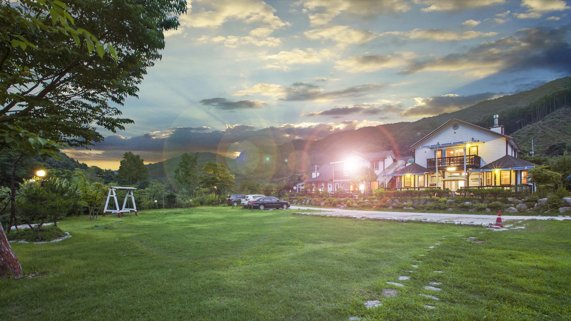 파프리카펜션은 펜션 앞에 아름다운 잔디정원이 펼쳐져 있습니다.